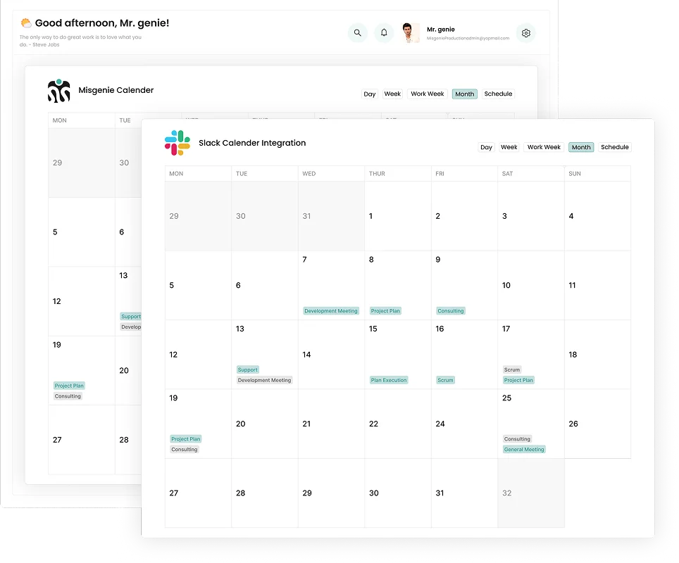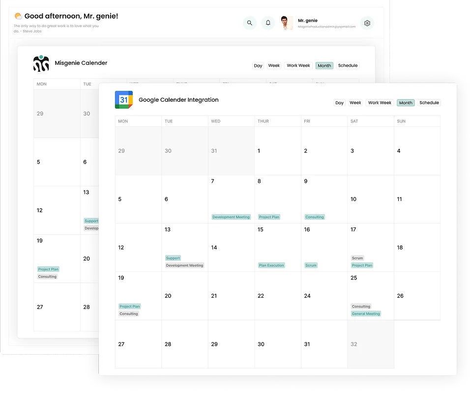 Sync employee calendars, share documents seamlessly, and access Misgenie data within Google Workspace.